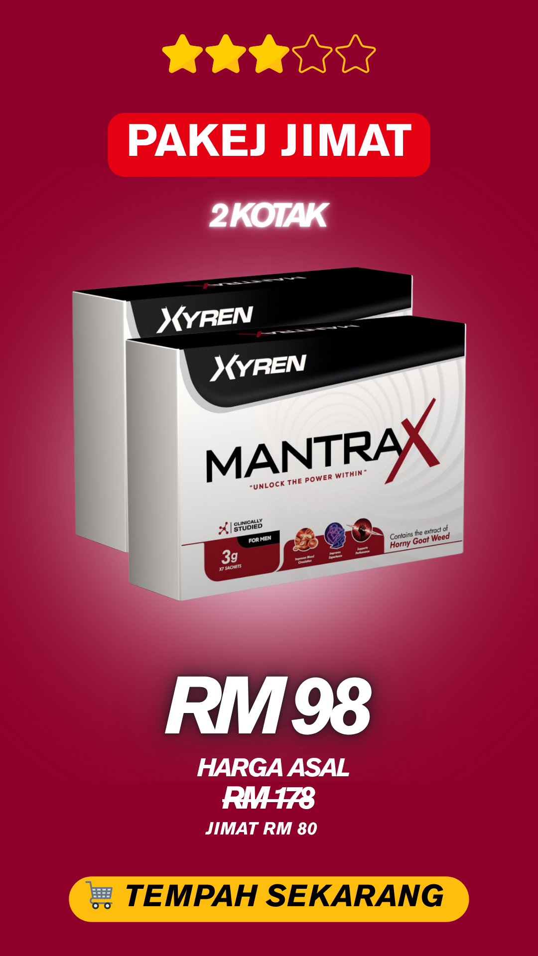 Dengan MantraX — Keras Lebih Padu, Tahan Lebih Lama, Tenaga Tak Cepat Habis, Pancutan Terkawal & Nafsu Meningkat.